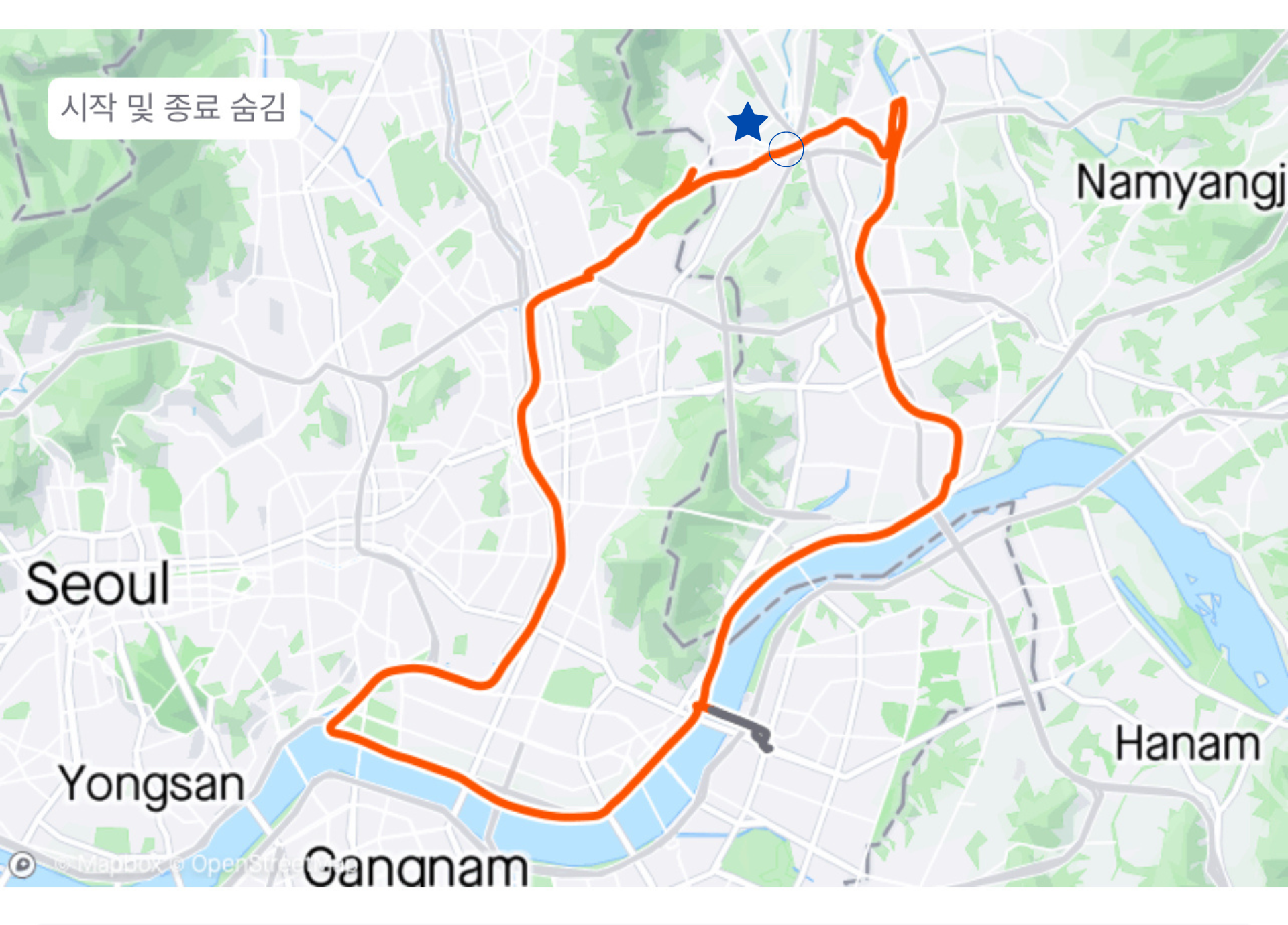 2. 코스 : 천호역 사거리 - 광진교 북단 - 중랑천 - 화랑대역 - 태릉선수촌 - 왕숙천 - 광진교 북단 - 천호역 사거리