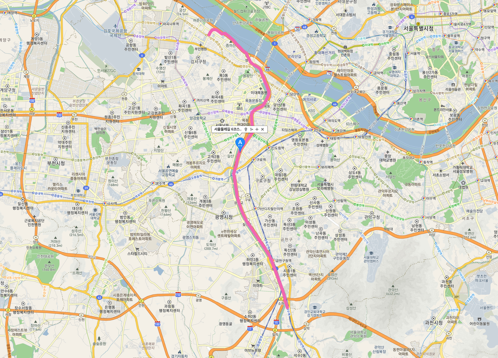그냥 주욱... 포장된 공원 산책길을 안양천, 한강 따라서 걷는다고 생각하시면 되요.