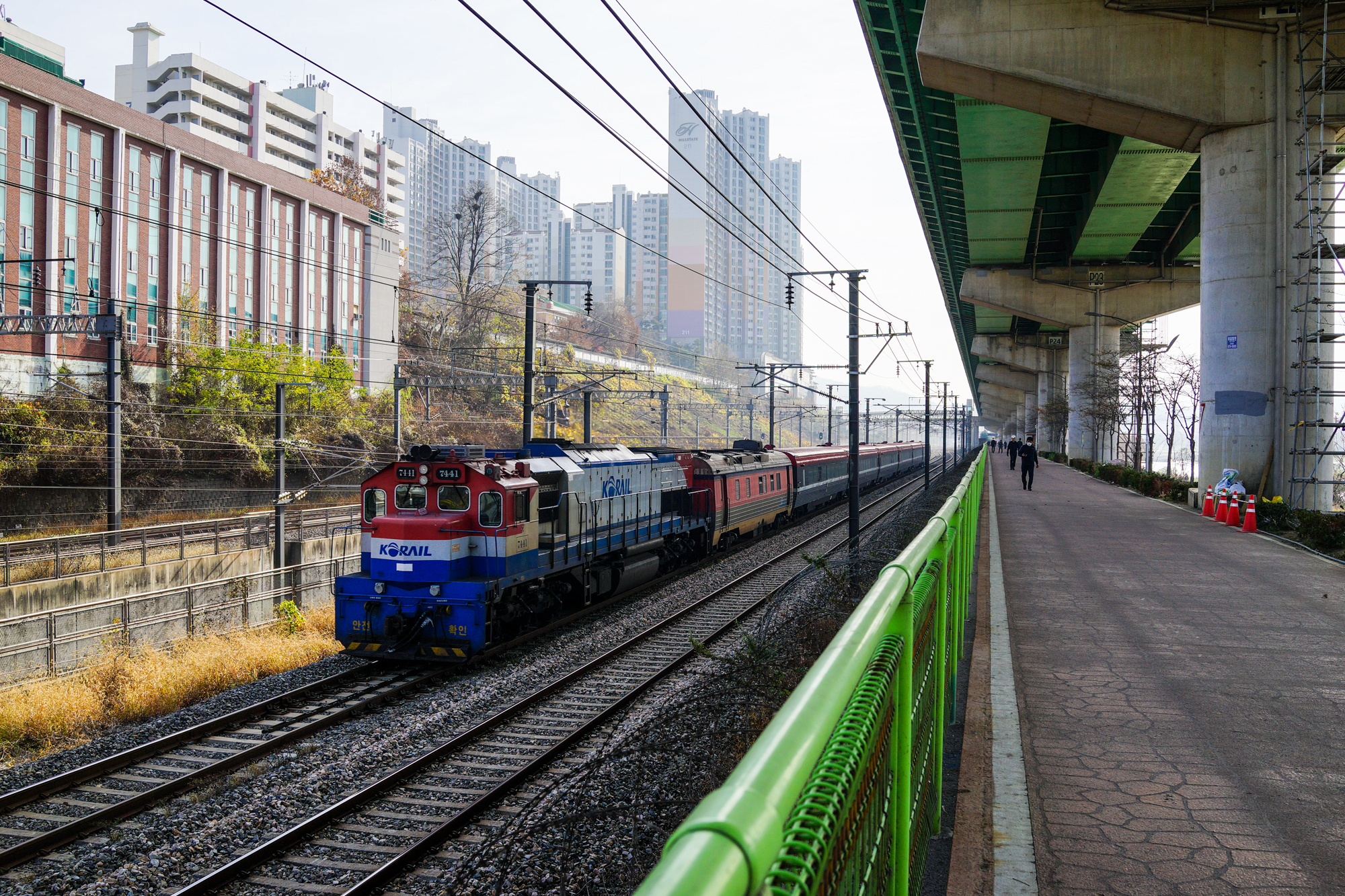 지나가는 열차 구경하는 재미라도 느껴보려고 노력하면서 걸었어요.