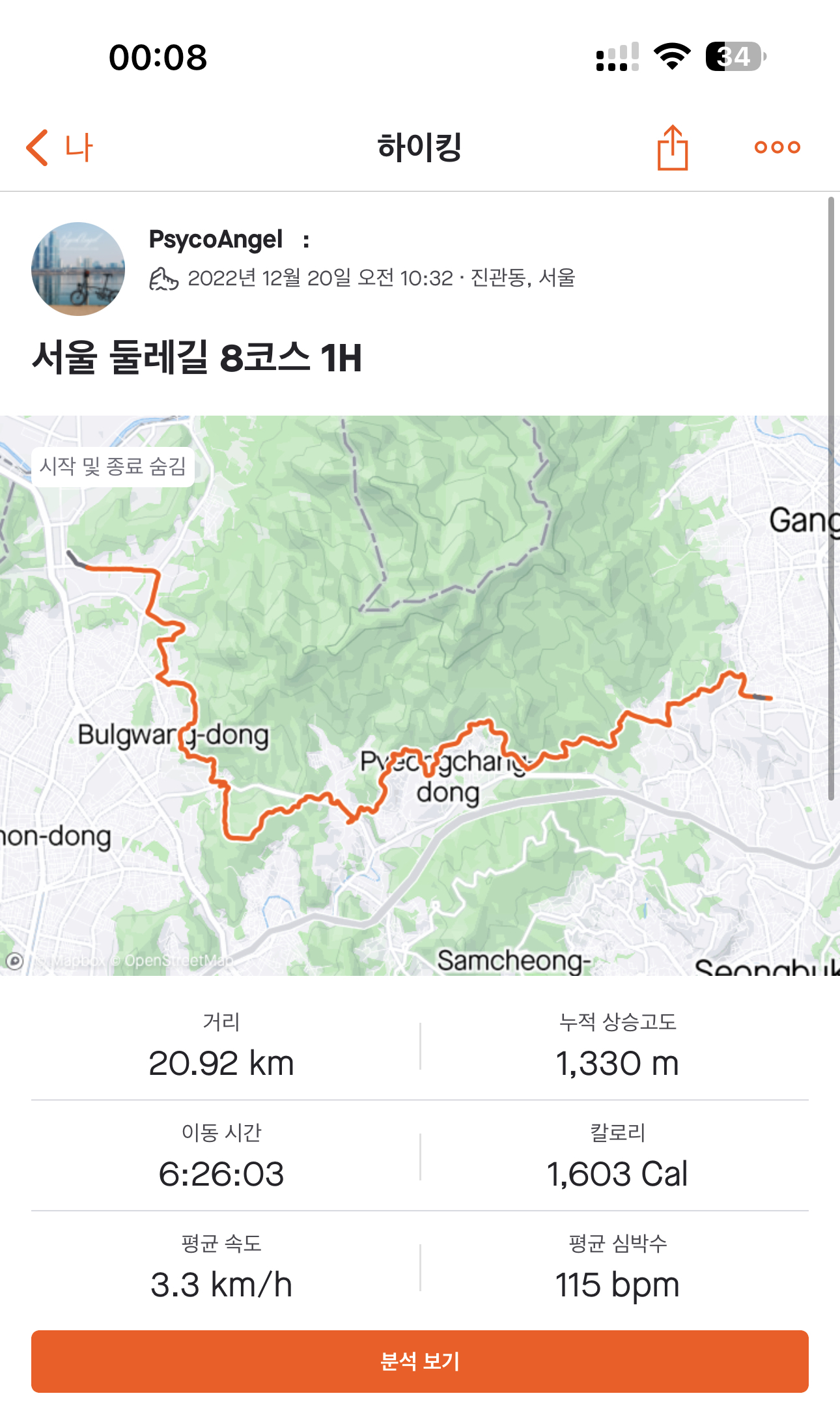 그러면 이런식으로 스트라바라는 어플을 이용해서 관리도 가능합니다.