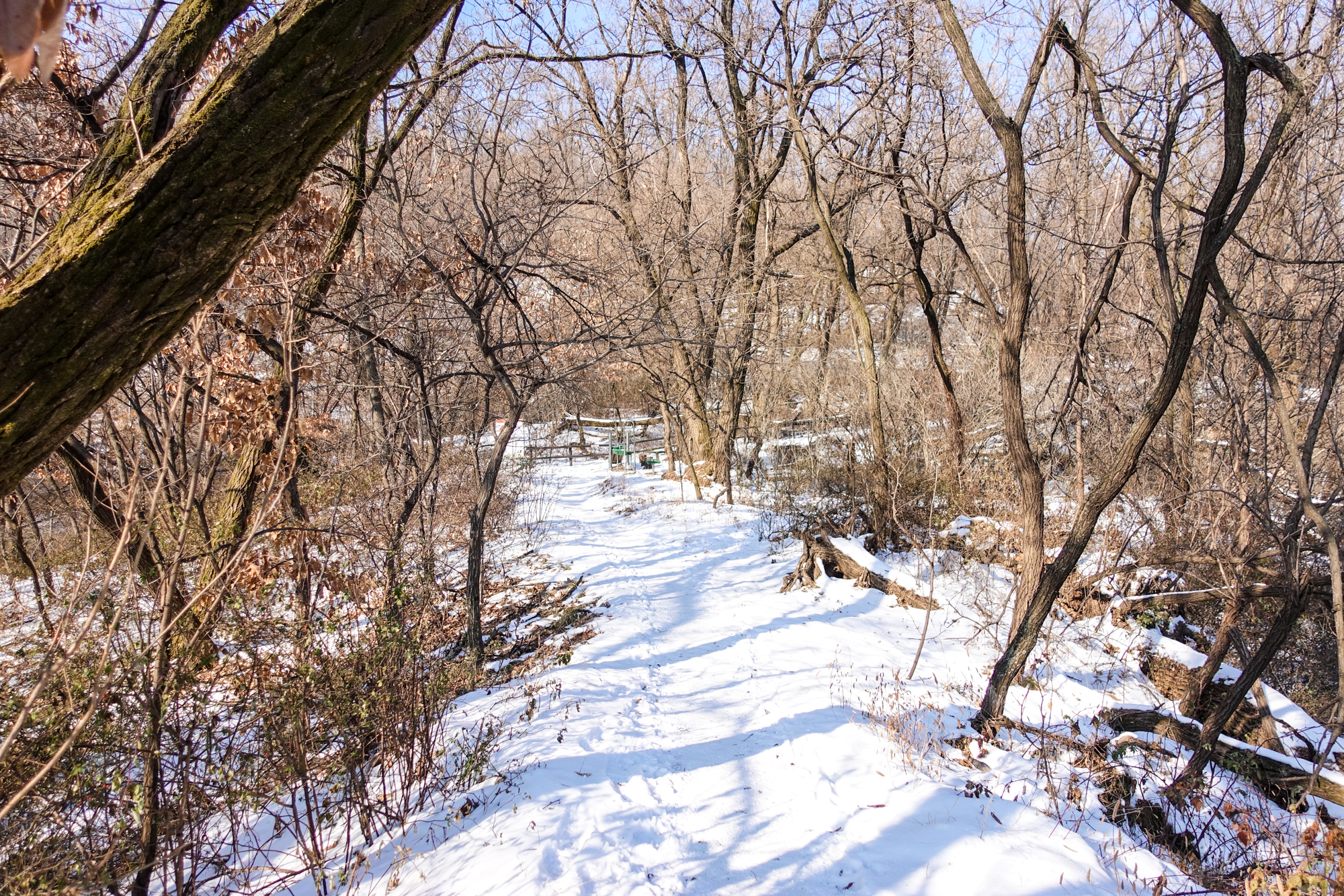 몇일전 눈이 와서 눈이 아주 소복히 쌓여있었어요. 둘레길간에 나무뿌리나 돌들이 눈에 다 덮여서 눈썰매 타고 내려가면...