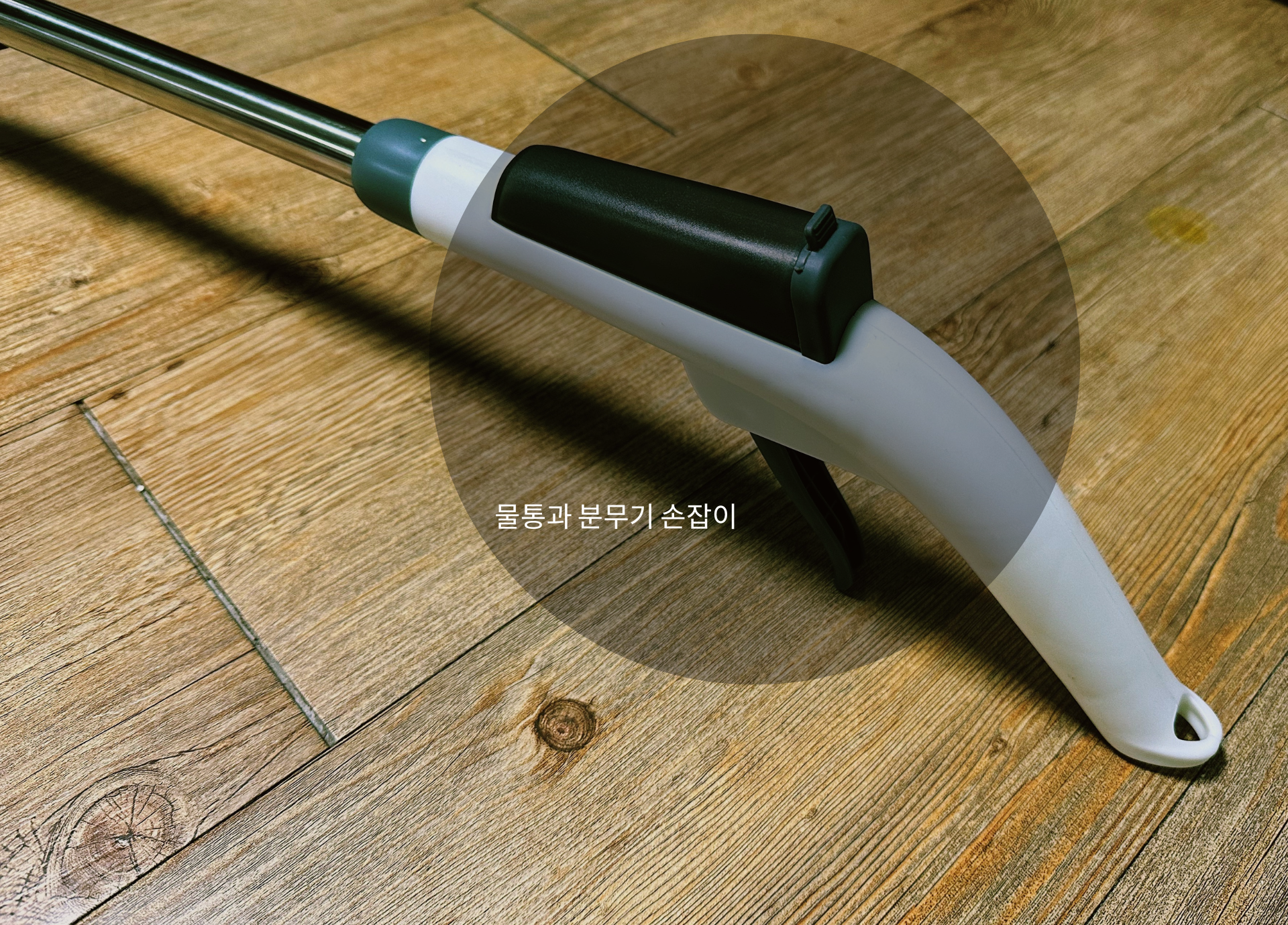 그리고 하단에는 물 분사구가 있어서 손잡이를 당기면 물이 칙칙~~ 나와요... 걸레 빨아서 장착하고 물기가 사라지면