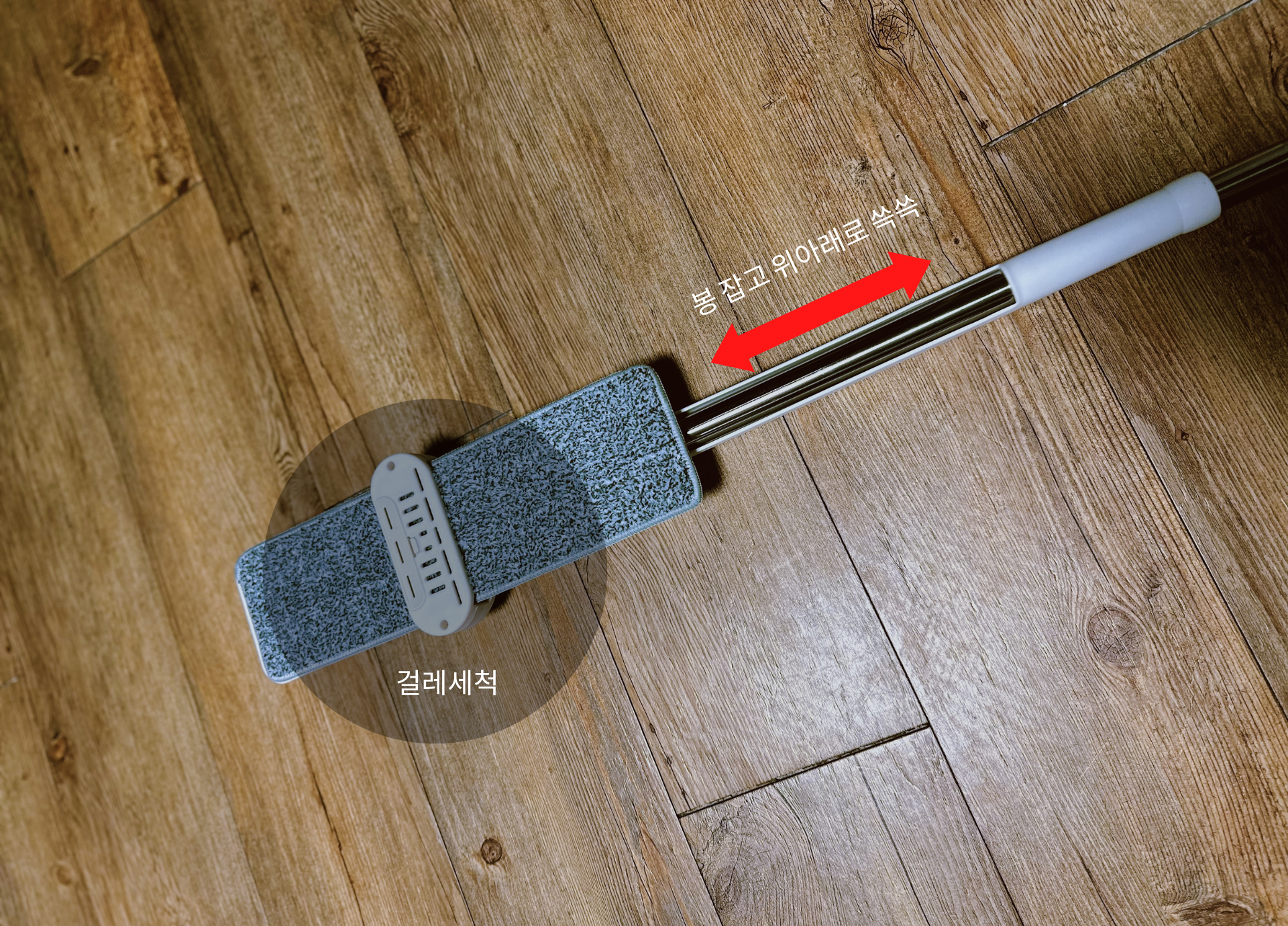 그리고 하단에는 물 분사구가 있어서 손잡이를 당기면 물이 칙칙~~ 나와요... 걸레 빨아서 장착하고 물기가 사라지면