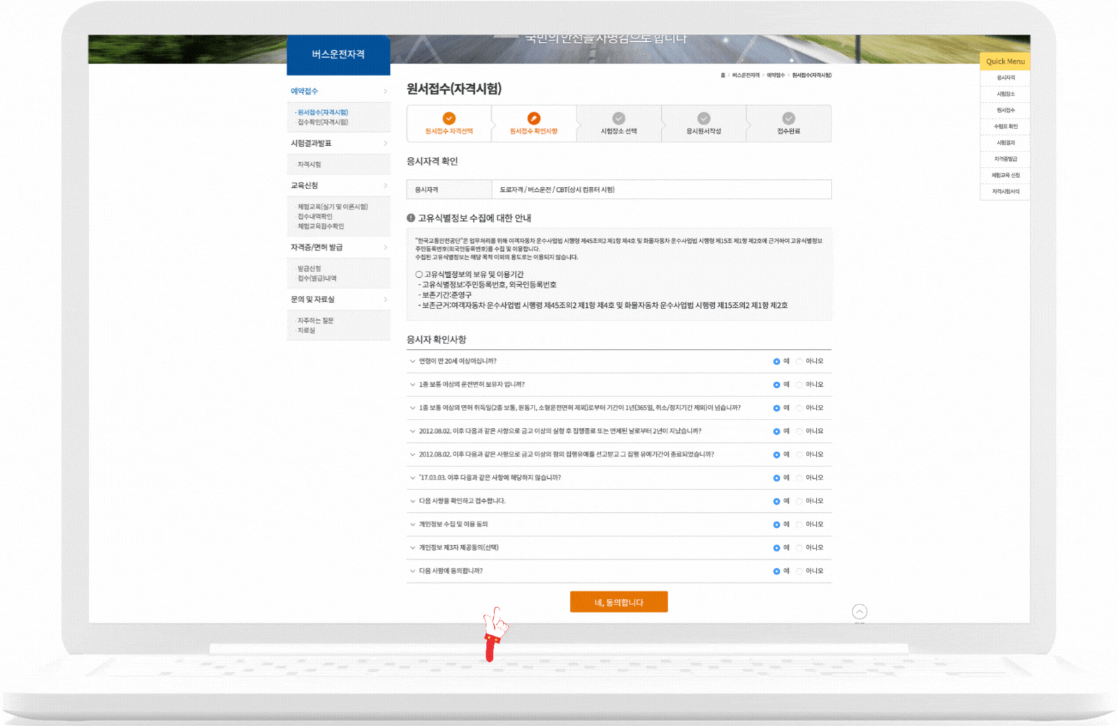 네 동의합니다 버튼을 클릭하시라고