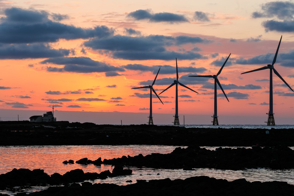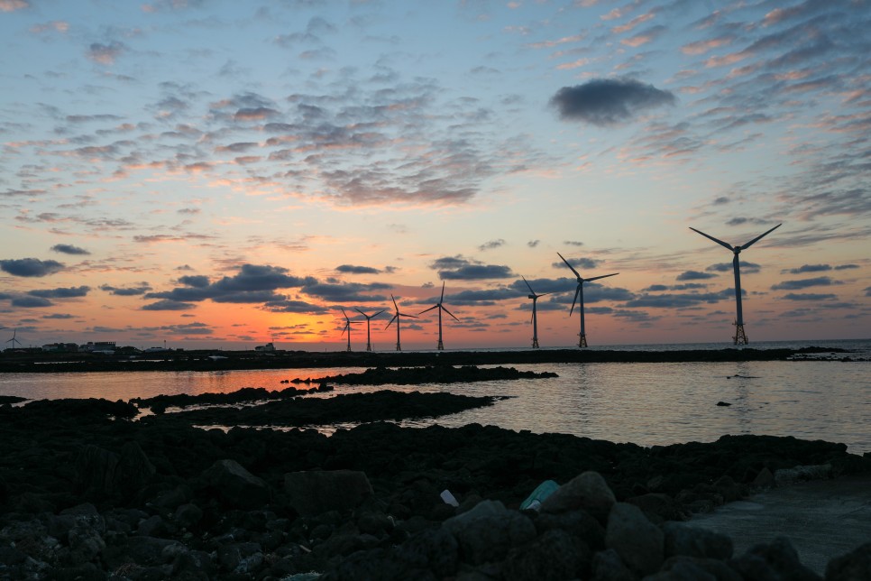 풍력발전기를 배경으로 일몰을 찍을 수 있는 장소입니다.
