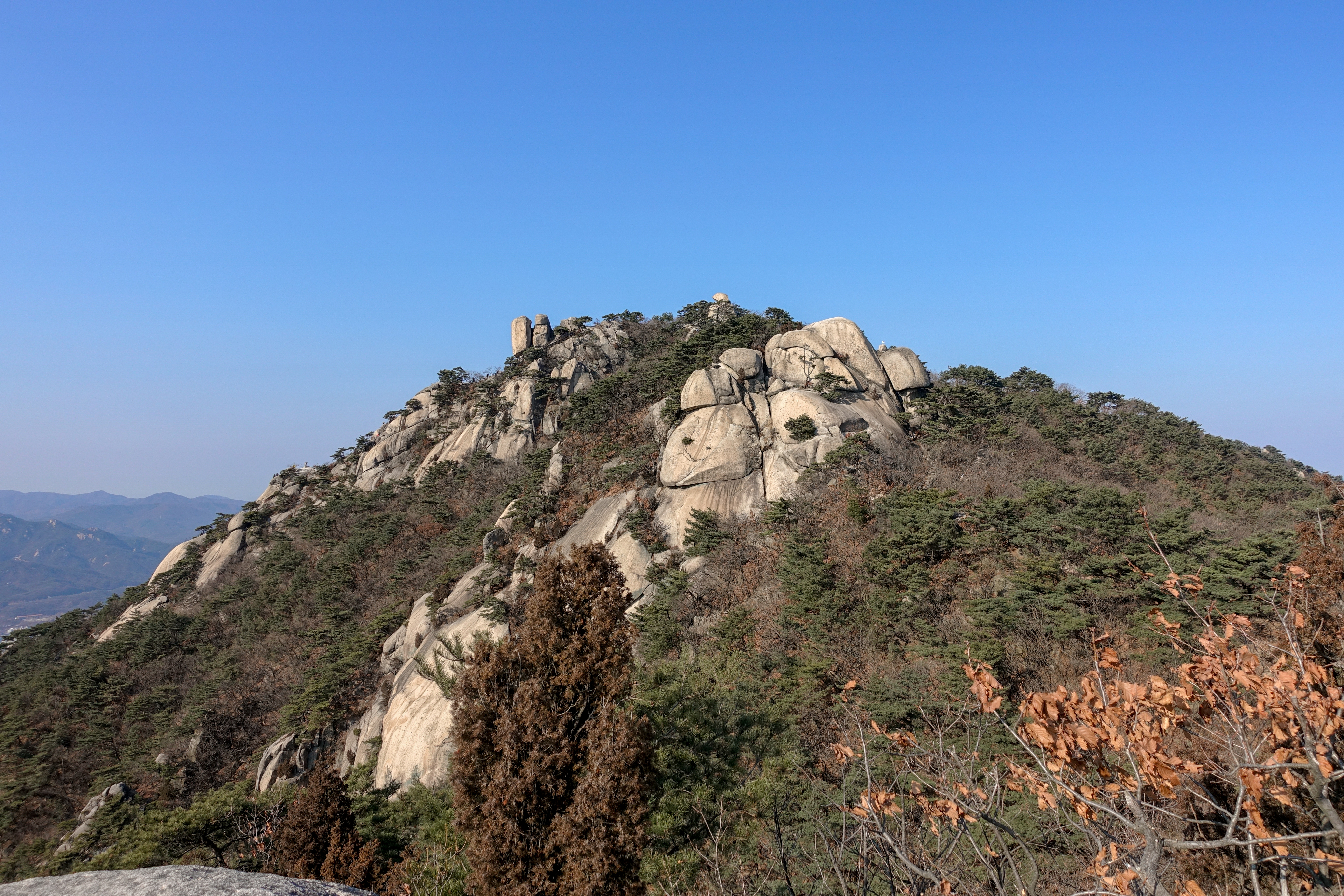 도봉산이나 북한산처럼, 뻥 뚤린 곳에서 줄을 잡고 올라가지는 않지만 그다지 친절한 산은 아닌듯 합니다.