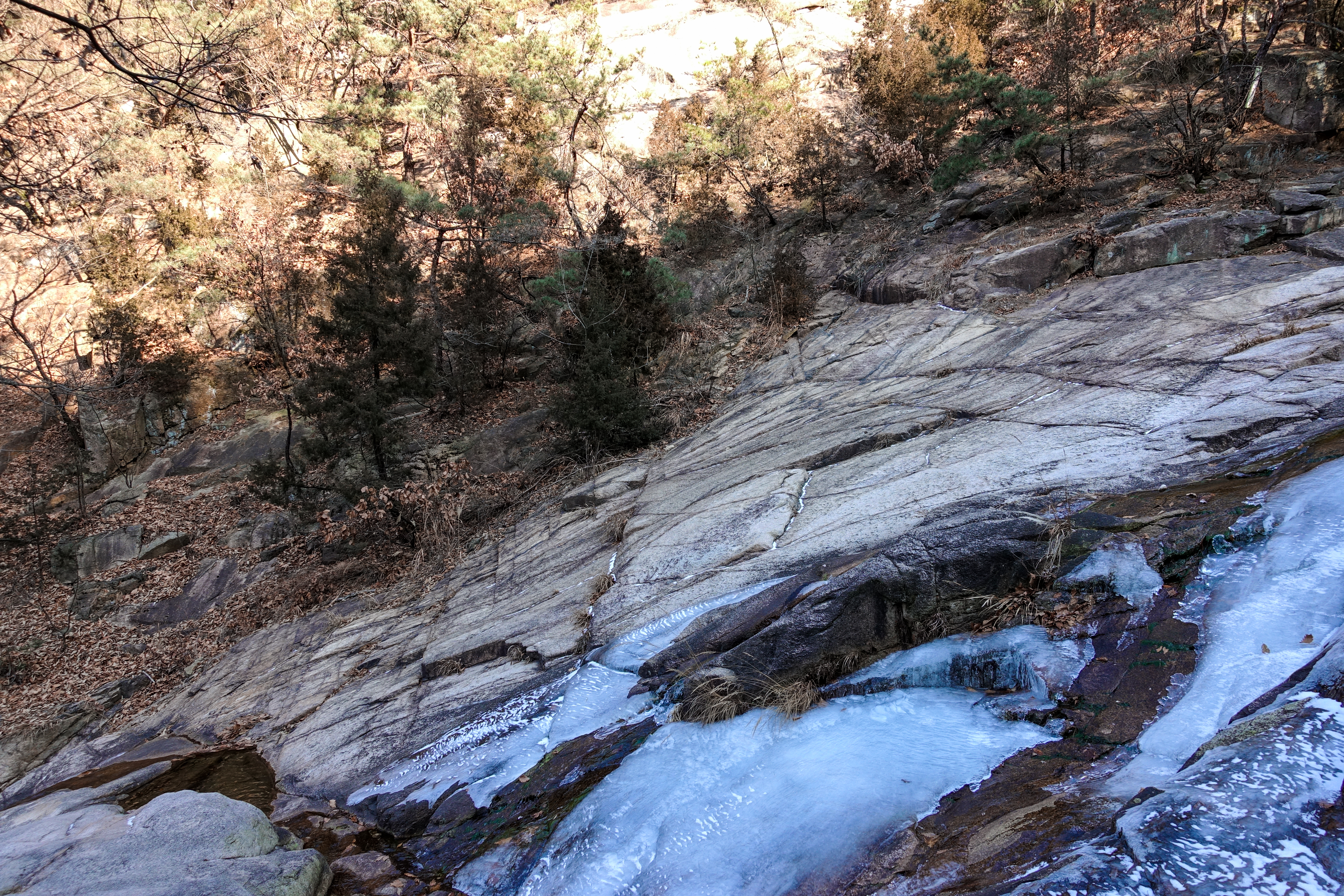 좀 가다보면 길이 나오겠지하고 무작정 내려갔다가, 미끄러지고 뒹굴고 하며 가파른 경사길을 주루룩 내려오니 이제 다시 올라가지도 못할 지경이 되었고 제 위치는 등산로에서도 벗어나 있었습니다.