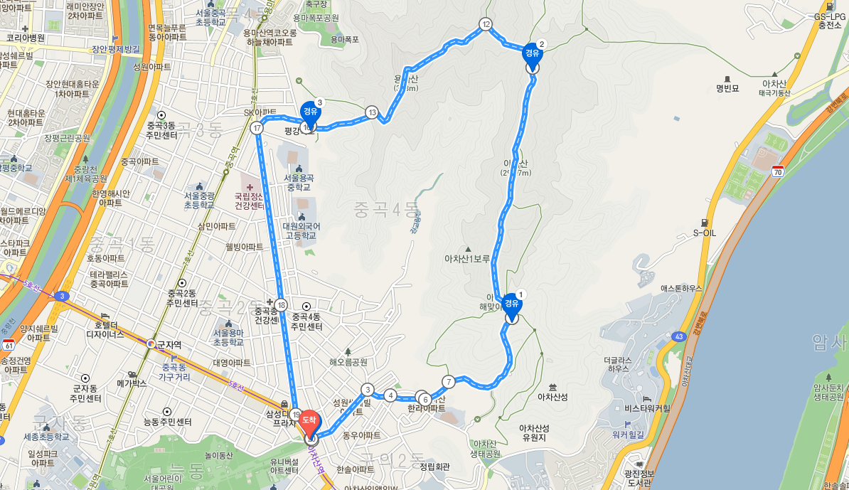 3) 도착지 : 아차산역 ( 5호선)