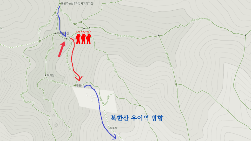 아무리 고민을 해봐도, 이 우회하는 길이 아니면, 우이암능선을 통과해야합니다.