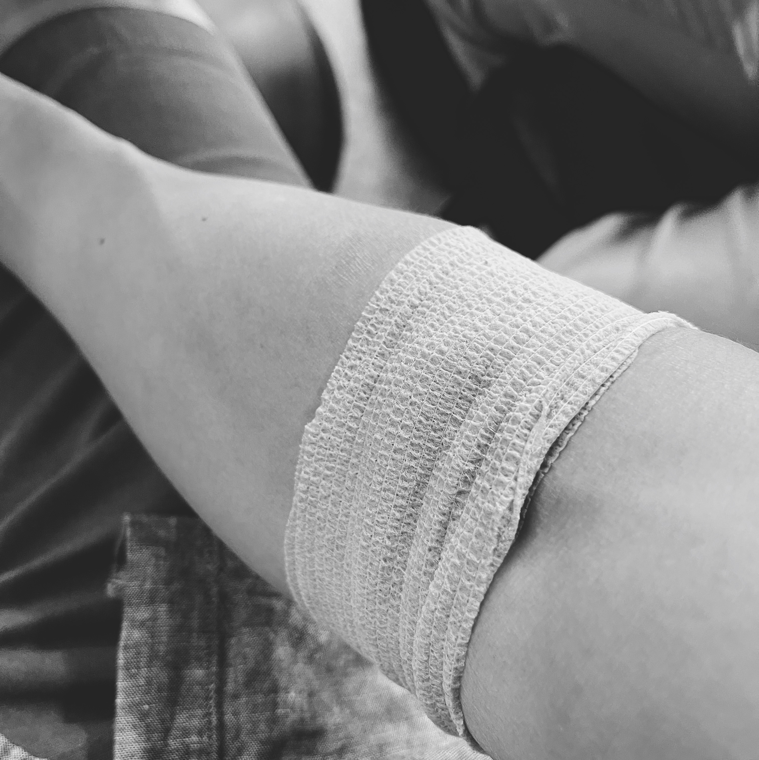혹시 지혈이 안될 수 있으니 반창코 위에 압박 붕대를 덧대어 감아주신 거에요.