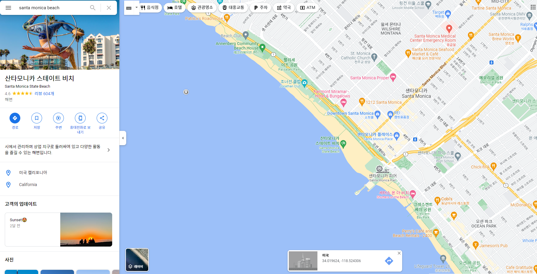 밑에서 위로 세번째 사진의 위치가 보통 산타모니카 해변으로 찾는 곳입니다.