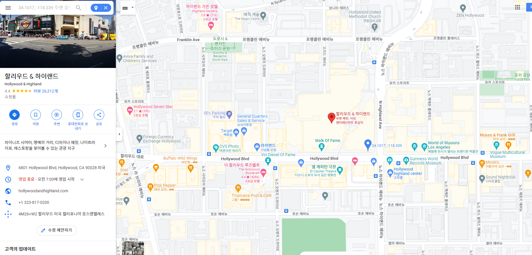 이곳은 Hollywood/Highland 역 근처입니다. 근처에 주차장도 있으니... 그곳에 주차하시면되고요.