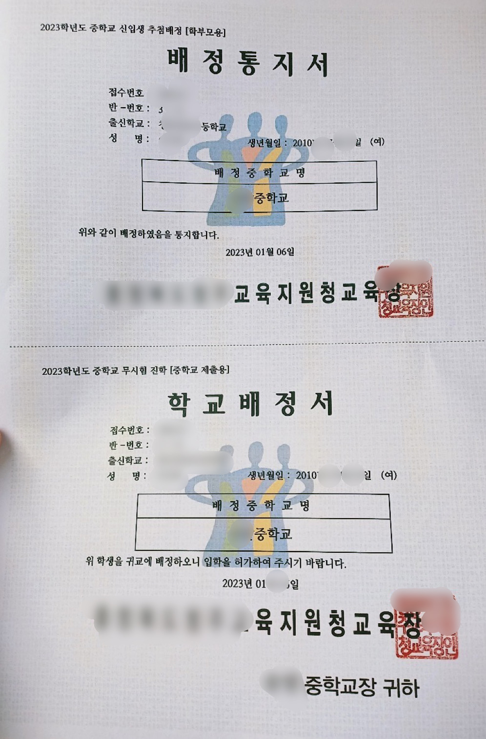 그 이유가 오늘 중학교 배정 통지서를 받는 날이기 때문입니다.