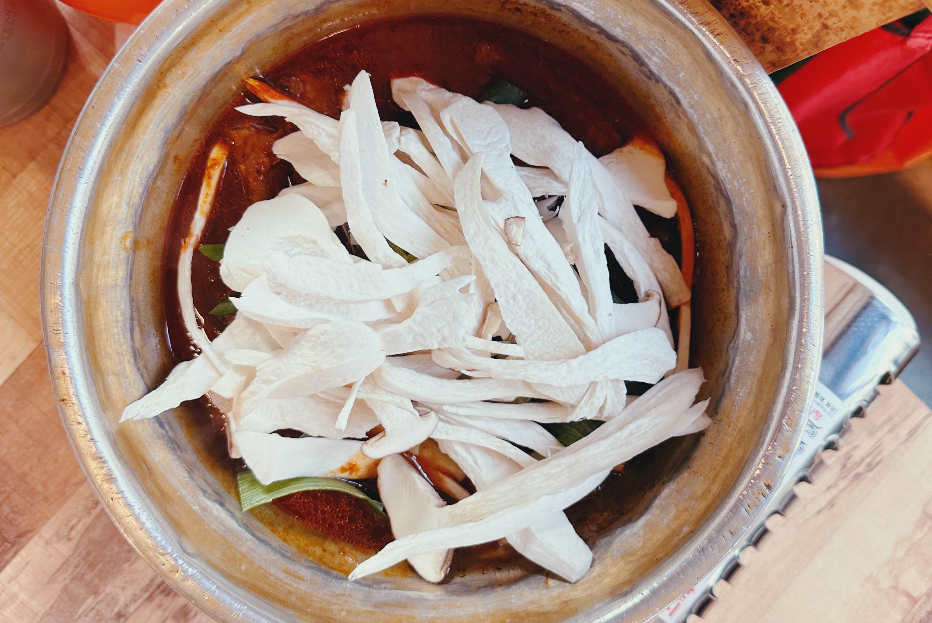 국물을 밥에 부어서 비벼 먹고, 국물만 먹기도 하고 매운데 맛있는 매운 맛이라 괜찮았어요.