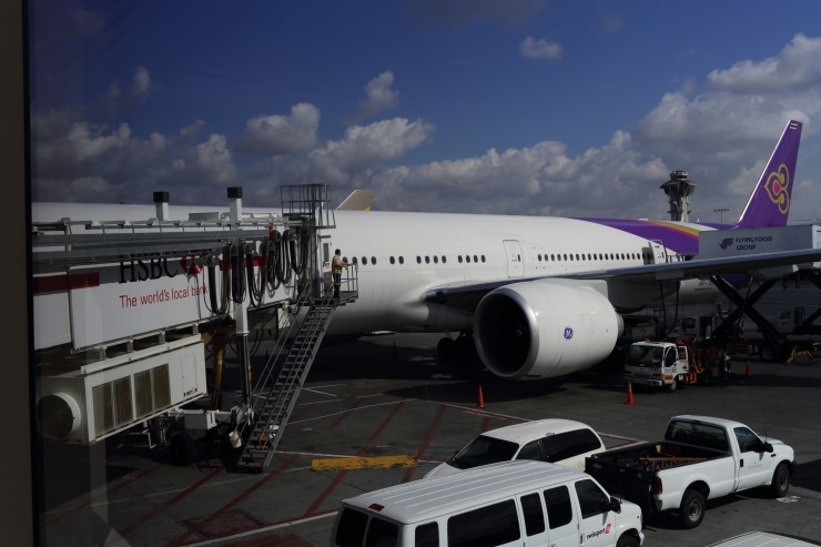 LA 공항을 통해서 출국을 합니다. 한국으로요.
