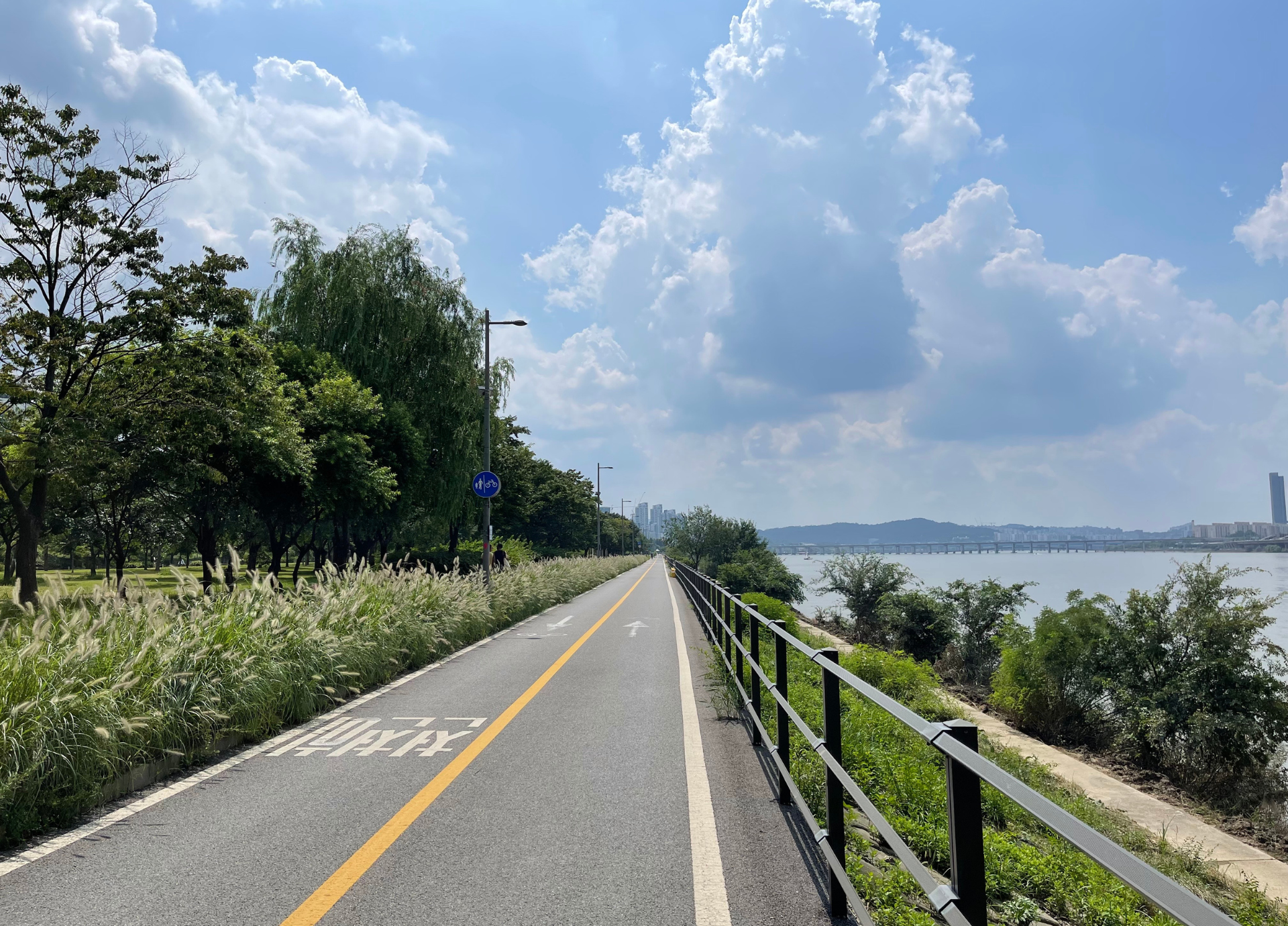 올림픽 공원을 지나가는 자전거 도로 상태도 매우 좋습니다. 공원내 잔디밭에도 진흙이 모두 씻겨져나갔고, 자전거 도로도 딱히 패인곳도 없이 상태가 좋습니다.